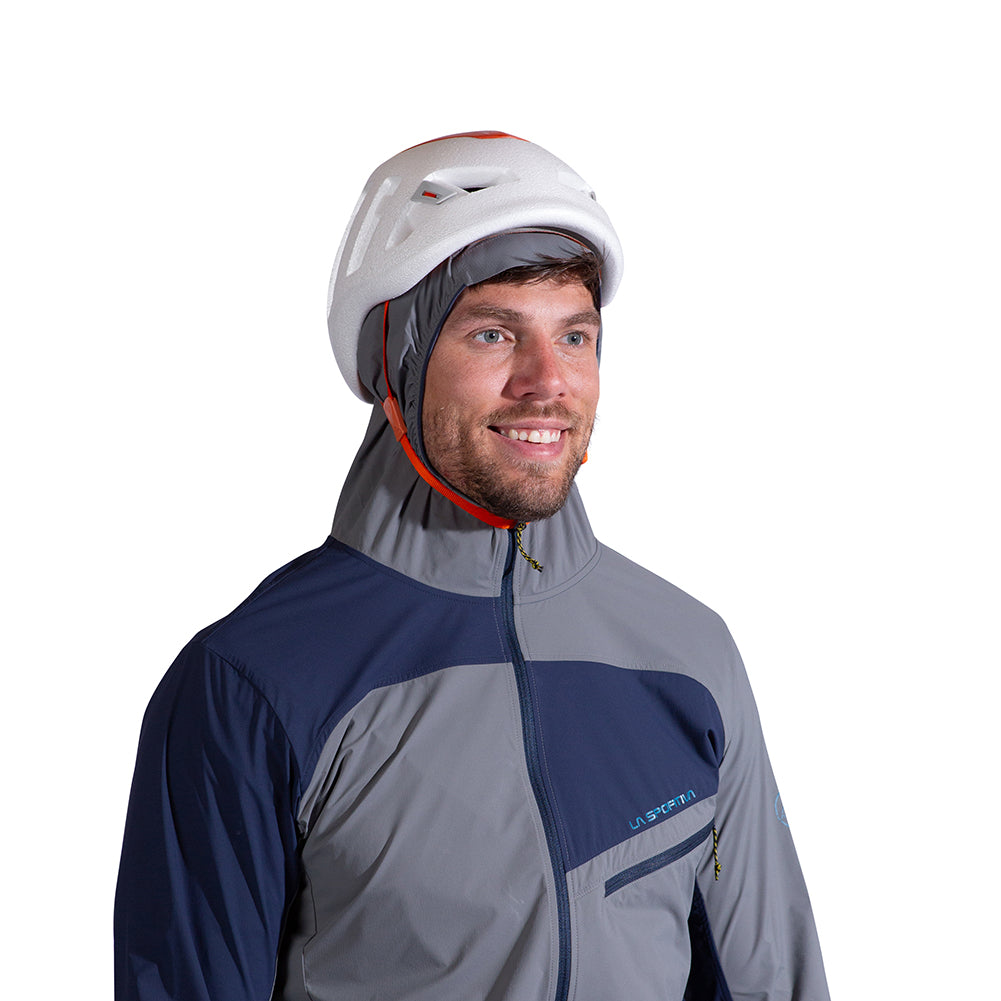- Helmet-compatible hood with a low-profile fit that stays in place under a helmet