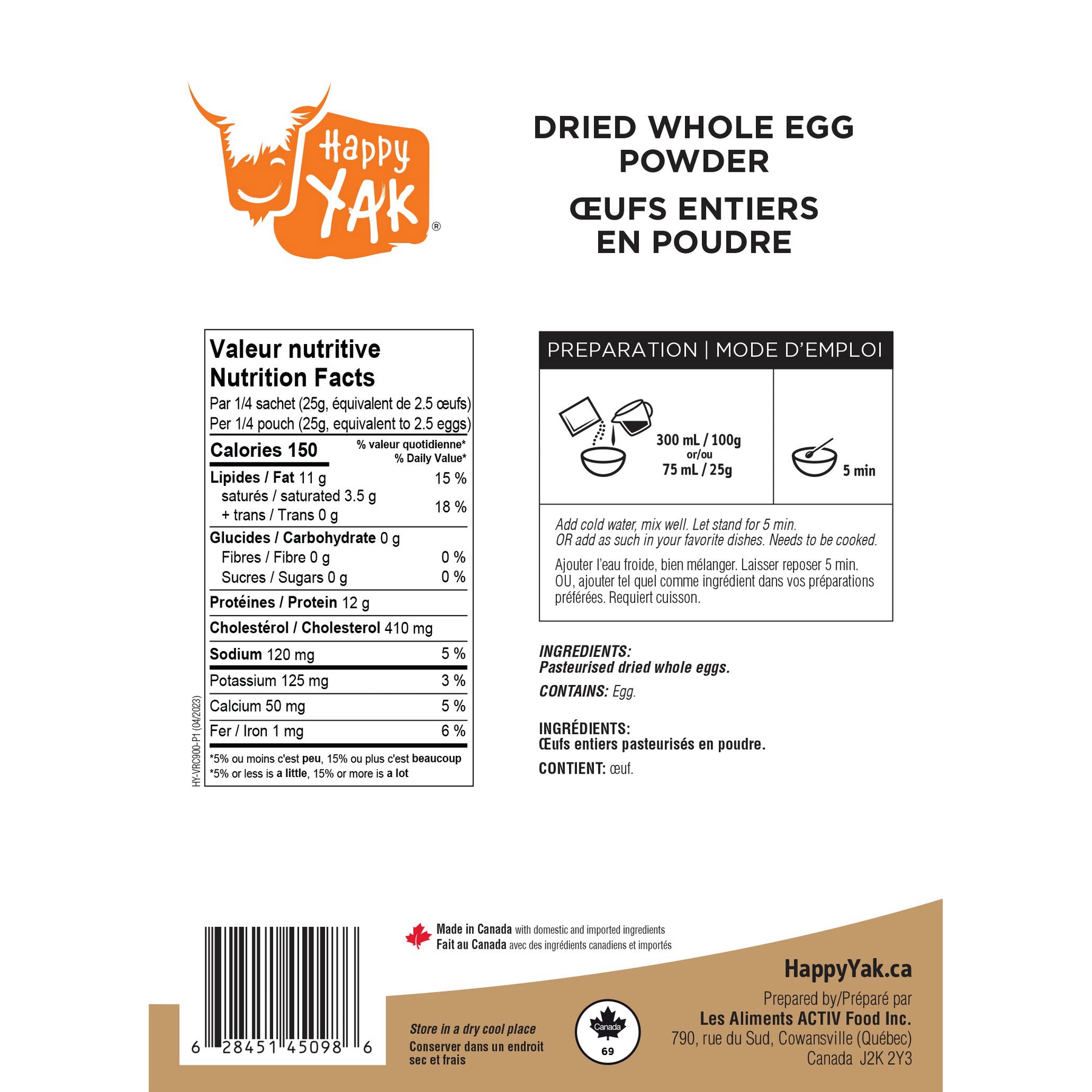 Carrying fresh eggs on expeditions, camping trips, or outdoor adventures isn’t always easy. Happy Yak’s Dried Whole Egg Powder is the perfect alternative, offering convenience, versatility, and long shelf life in a lightweight format. Use it to prepare omelettes, scrambled eggs, pancakes, baked goods, or smoothies, whether you’re in the backcountry or at home. Simple to use and easy to store, this freeze-dried egg powder makes meal prep effortless wherever you are. Ideal for long trips, bulk food storage, or emergency preparedness, whole egg powder helps you enjoy the benefits of eggs—without the fragility.