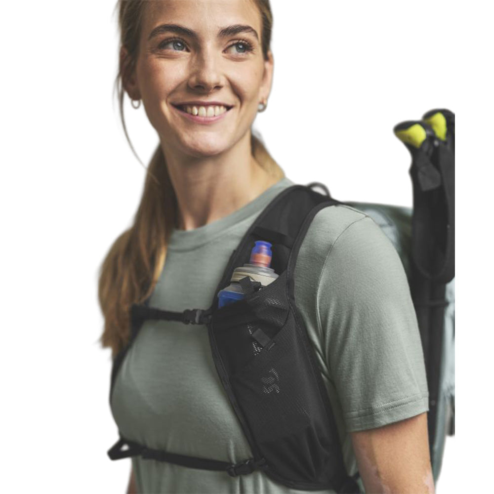 Made for fast mountain adventures: The ultralight TRACE 20 boasts a body-hugging fit, low weight and high functionality. Its breathable, ergonomic shoulder straps and AIRVENT BACK SYSTEM provide comfortable ventilation. The robust backpack with an outer material made from 72% recycled polyamide can be quickly and easily compressed using the straps. The removable hip belt and chest strap give it added stability under heavy loads. Three pockets on the shoulder straps provide ample space for a 500 ml soft flask, cell phone and trail bar, all within easy reach.